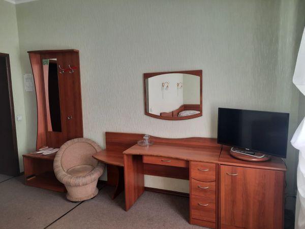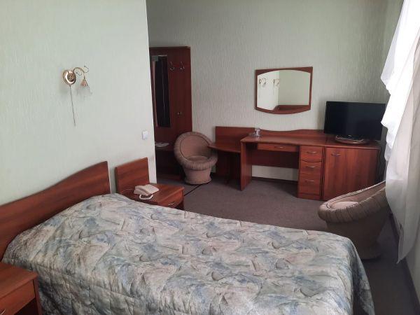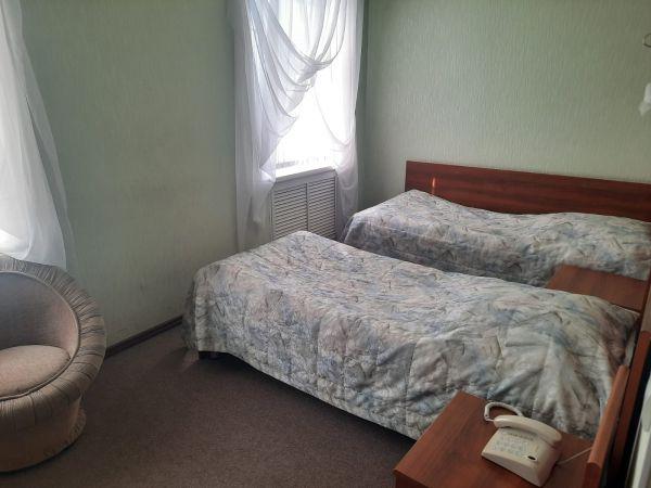 Номер площадью 18 кв.м. с двумя отдельными кроватями. Состоит из жилой комнаты, поделенной на две зоны: спальную и рабочую.