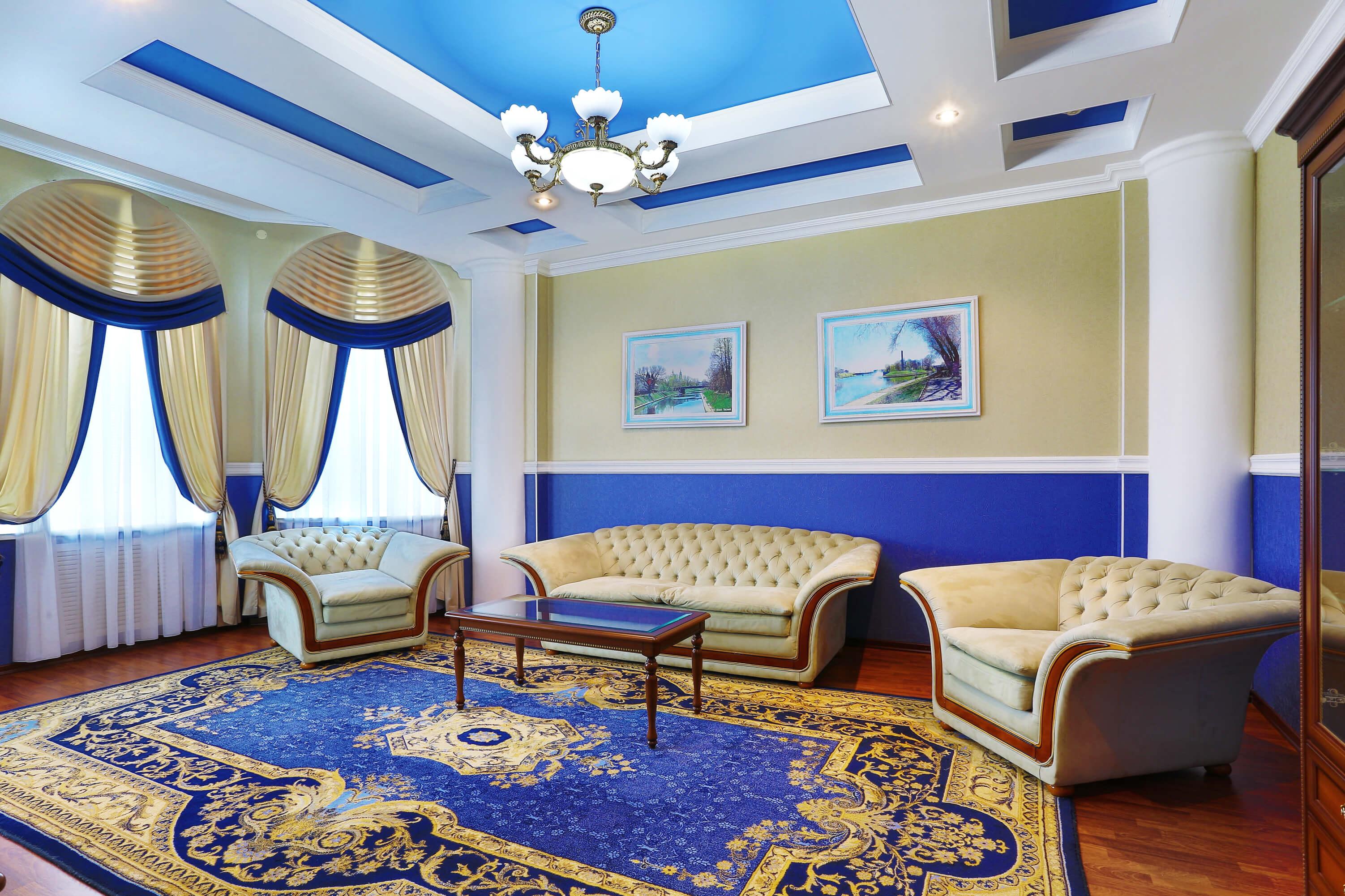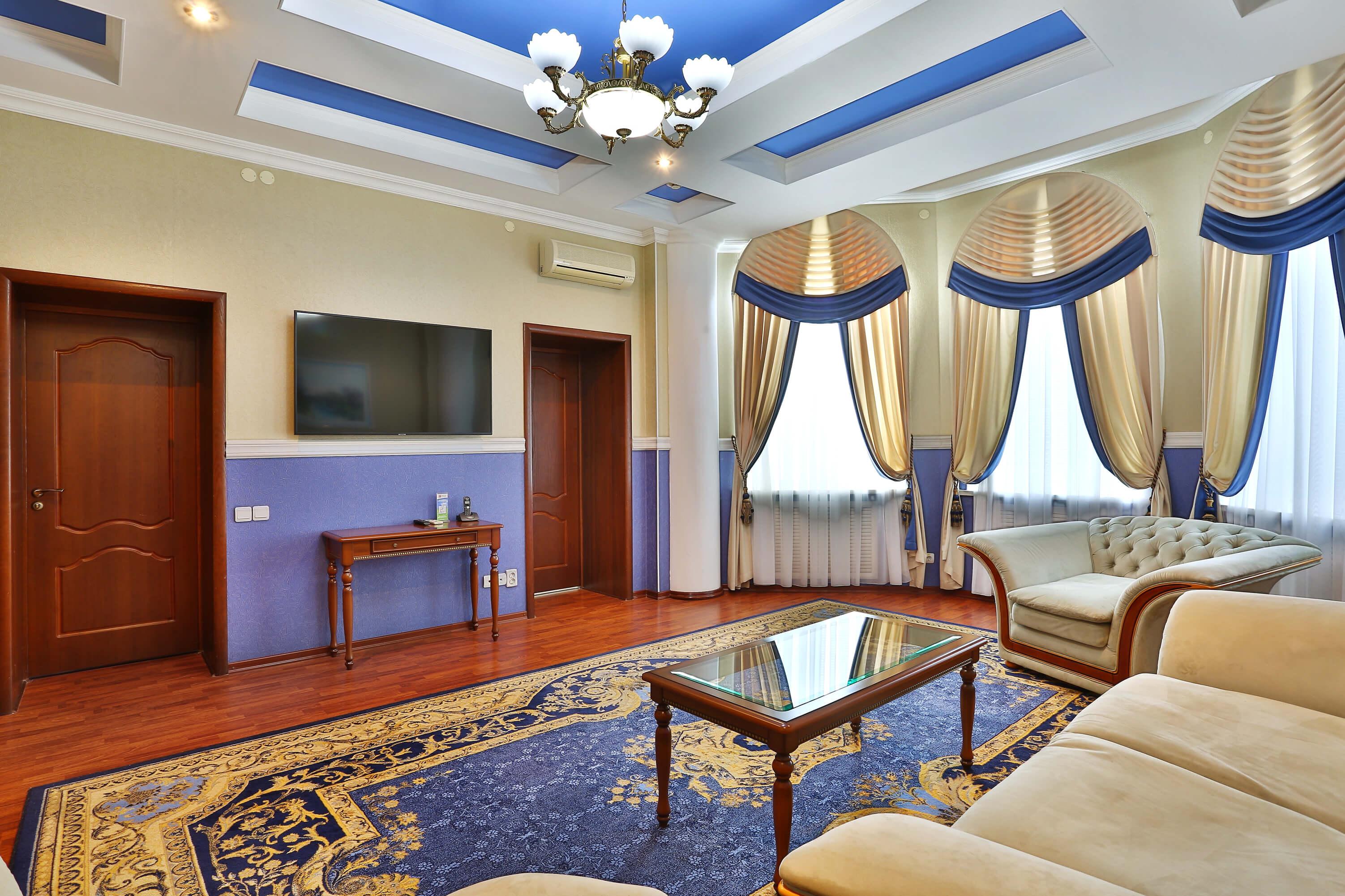 Просторный двухкомнатный номер 53,7 кв.м. с гостиной (диван, кресла, стол, шкаф с набором посуды) и спальней с широкой кроватью.