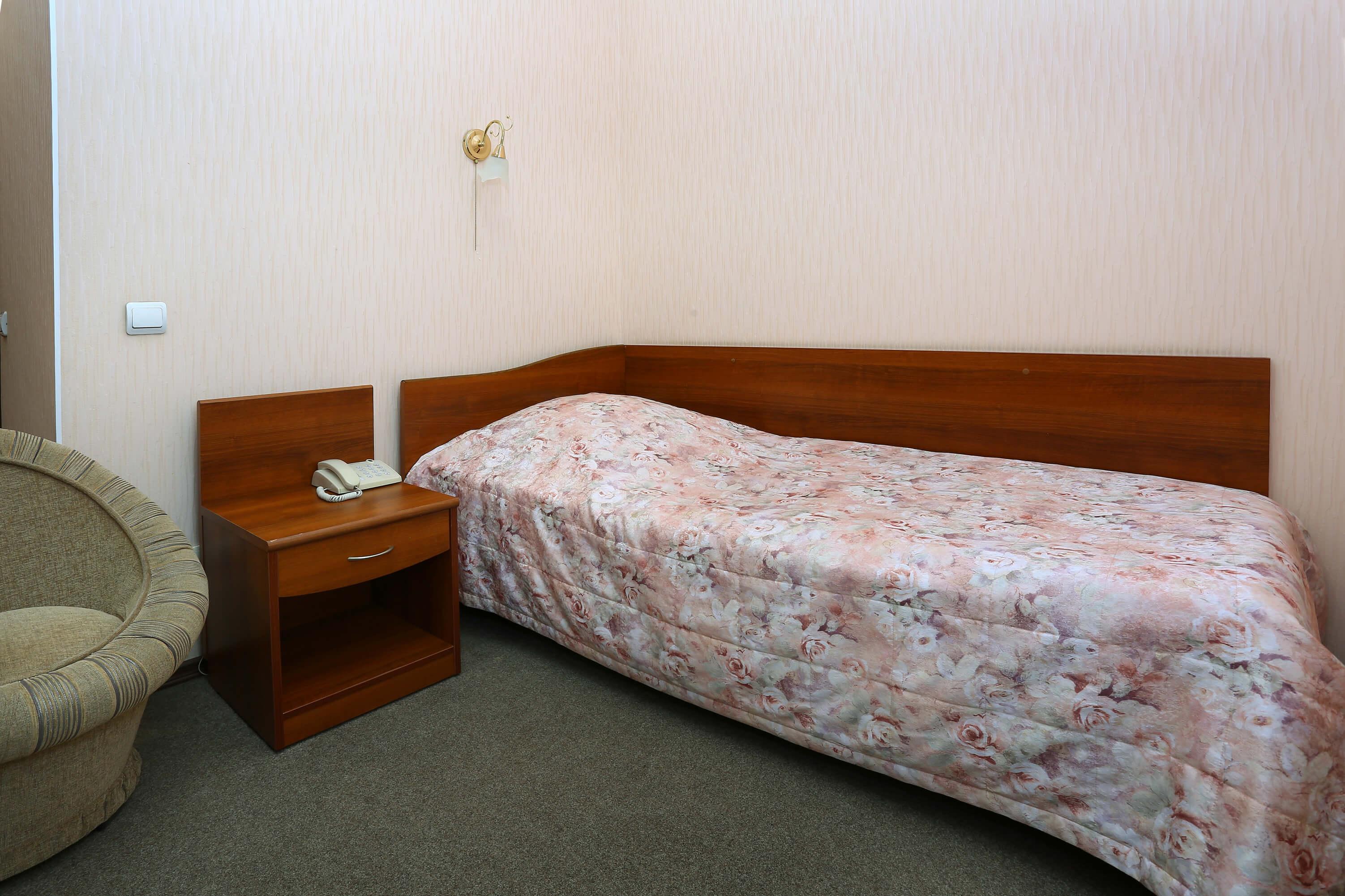 Номер площадью 17,5 кв.м. с одной кроватью. Состоит из жилой комнаты, поделенной на две зоны: спальную и рабочую. Рассчитан на проживание одного человека.